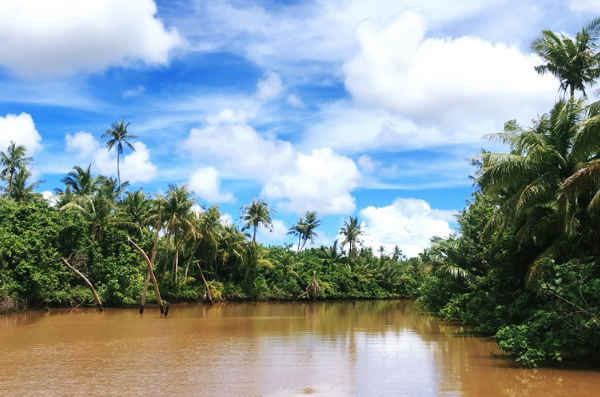 구명조끼를 입고 이렇게 생긴 배를 타고 정글 탐험하러 갑니다.
