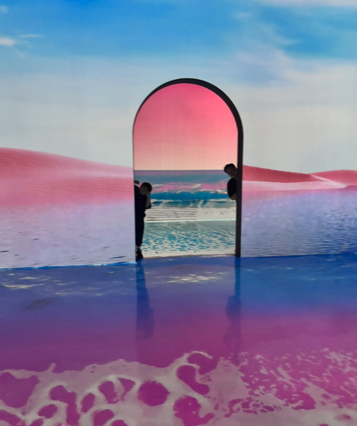시간을 거슬러 여행하는 듯한 착각에 빠져 한참을 머물렀죠. 이어서 펼쳐진 아름다운 핑크 비치는 마치 꿈속의 풍경 같았어요. 실제로 파도가 치는 듯한 미디어 효과와 함께 핑크빛 모래사장을 거니는 기분은 오직 뮤지엄 헤이에서만 느낄 수 있는 특별한 경험이었어요.