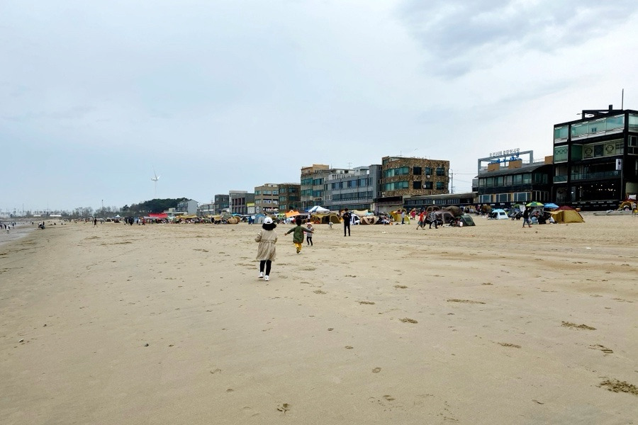 해수욕장 길건너편에 공영주차장이 아주 넓게 있어요