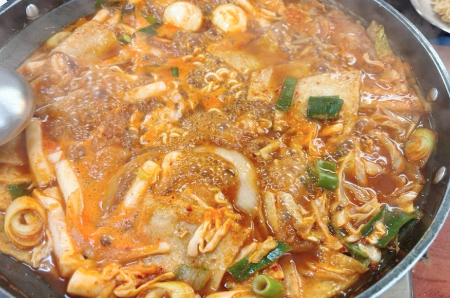 드디어 영롱한 자태를 뽐내며 등장한 즉석 떡볶이! 보글보글 끓어오르는 빨간 국물과 탱글탱글한 밀떡, 라면사리, 어묵, 양배추 등 푸짐한 재료들이 침샘을 마구 자극하더라고요. 역시 눈으로 먼저 먹는 게 최고!