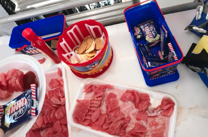 낚시 중간에는 신선한 회와 간단한 간식까지 제공되어서, 출출했던 배를 든든하게 채울 수 있었어요. 바다 위에서 먹는 회는 정말 꿀맛이었습니다!