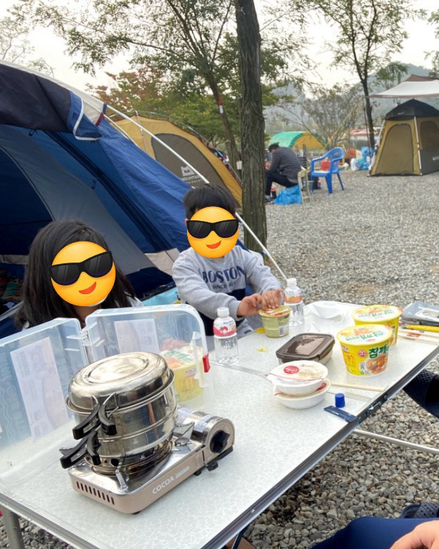 아침에 야외에서 먹는 라면이 얼마나 맛있게요~