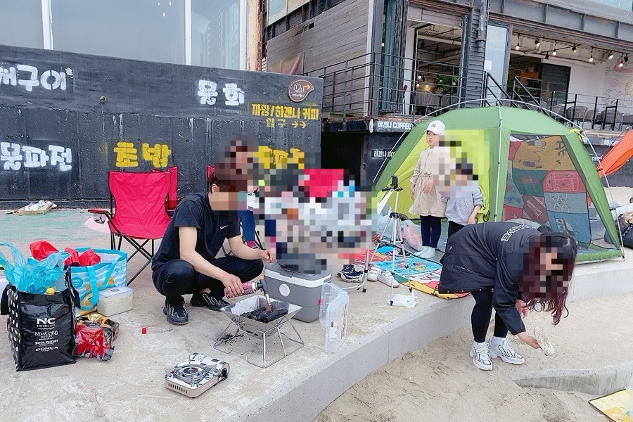 대부도에서 텐트도 펴고(피칭이라는 단어를 쓸 수 없는..)